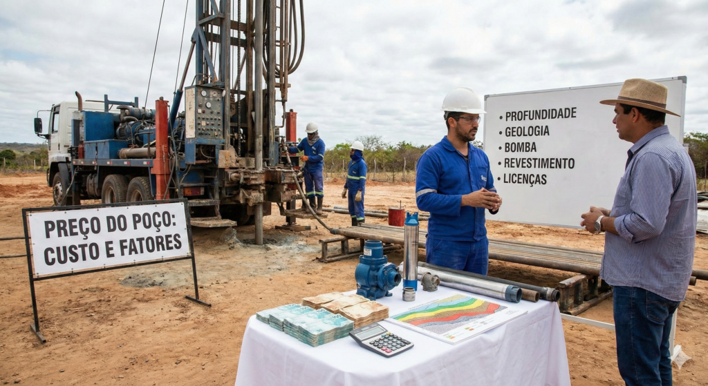 - Poços médios (50 a 150 metros): faixa mais comum no Brasil, com bom equilíbrio entre custo e resultado